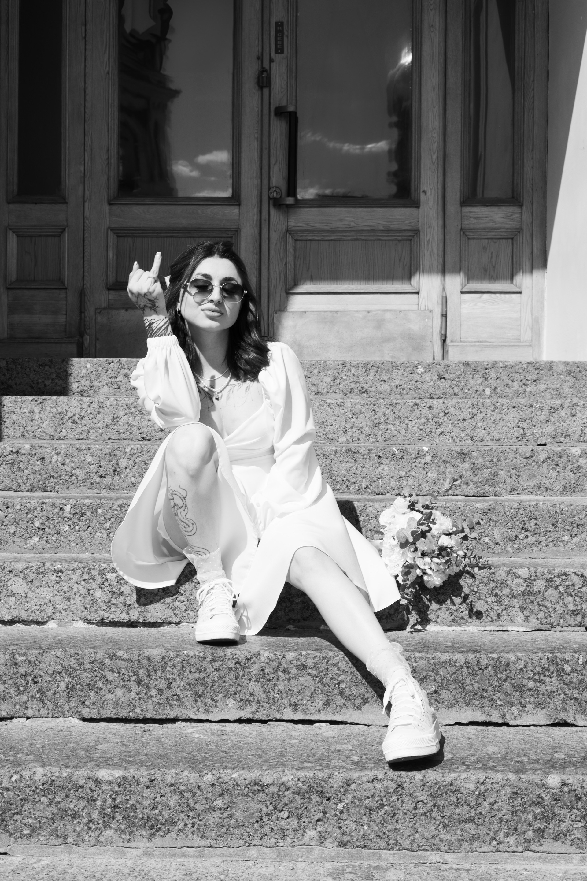 Лара и Никита поженились весной 2025 года. Молодые ребята хотели получить дерзкие фотографии в стиле их пары. Мы добавили в их серию больше изображений татуировок, граффити и смелые позы. Получился смелый сет с особой атмосферой
